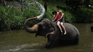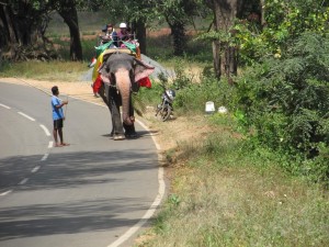 Po pěti minutách na jednom místě nás okamžitě zatáhnul za slonicí, která nás má svézt. Nechutné! Než jsme něco řekly, už jsme musely platit a sedět na hřbetě. Povely a píchání do slonice, aby zvedla chobot bylo odporné. Násilím nás musela pokropit. Nejenom, že jsme musely platit za svezení, ale musely jsme dát bakšiš tyranovi co na ní hulákal. Jízda byla pro mě ohavnost a již nikdy bych nic takového neabsolvovala, jelikož se jedná o týrání zvířat.