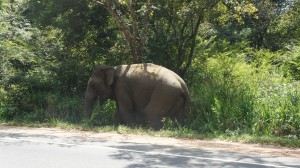 Na závěr: tento den jsme viděly prvního a posledního volně pochodujícího sloníka na silnici. Také koupajícího se sloníka - byl tedy hodně daleko. Krásný pohled oproti Pinawelle. Opice všude a nečekaně mě u Lion rock pokálel pták!