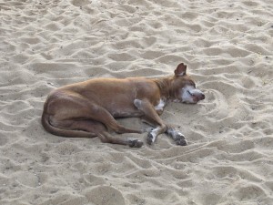 Psíček. Není mrtvý, pouze je unavený z tepla.