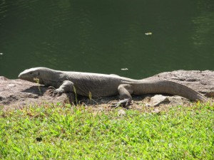 Šly jsme podél skály, kolem vody, viděly jsme první varany. Že půjdeme na parkoviště a odjedeme. Zastavil nás čmoud v uniformě se slovy "Where are you going!" Byl zlý. Naštěstí přijelo auto, tak jsme utekly. Napsaly jsme Dilankovi ať nás vyzvedne na místě, kde nás vyhodil. Žádná odezva. Jarča mu volala, nakonec to zvedl a přijel. Hodina v čoudu.