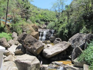 Ráno bylo plné očekávání na nového řidiče. Přišel již o půl osmé ač jsme ho čekaly na devátou. Milý chlapec, věk cca 40 let, jméno George. O půl deváté jsme vyrazily směr čajové plantáže. Po cestě nám nabízel strawberry drink, který jsme odmítly a začaly jsme spekulovat, že to bude stejné jako s Dilankou. Po cestě z Kandy jsme viděly místní vysokou školu. Moc pěkná. Nad Kandy nám George zastavil na vyhlídce. Nádherná scenérie. Po pravici jezírko, po levici japončíci a hory. Proběhlo selfie u polovyschlého vodopádu a George odháněl žebračku (věk neznámý - cca 80 let). Potěšilo nás to. Vzhled byl dosti podobný zombie ze seriálu The Walking dead (pozn. seriál o zombících). Již jsme seděly v autě a čekaly na odjezd, když v tom paní zombie nahlížela do auta a Jarča se vylekala, jako by spatřila smrt :D Doteď vidím její výraz :D Paní neměla bělmo, pouze dark eyes.