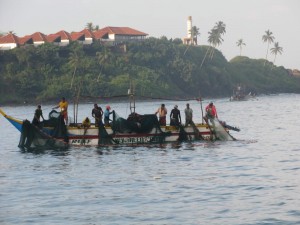 Rybáři sklízejí sítě.