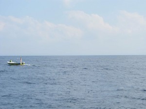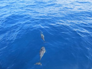 Z nějakého důvodu se rozhodli naši kapitáni změnit směr a vydat se po vlastní ose. SKVĚLÝ NÁPAD!!! Po nějaké době jsme viděly hejna delfínů. Došla mi slova, skoro jsem nedýchala. Bylo to úžasné. Náš lodní čmoud na ně pískal a oni k nám dopluli :) Po nějaké době jsme potkali malé lodičky, vapadalo to, že je nějak vábili. Netušíme čím, ale za nima plulo další hejno.
