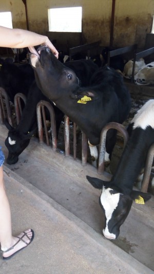 Je celkem normální, že zvířátka všeho druhu jsou kdekoliv na jakémkoliv místě. Takže stojící kravička na terásce není nic neobvyklého :)