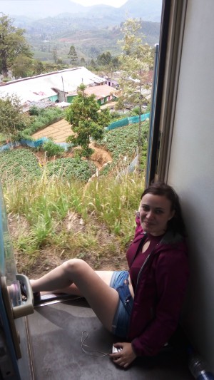 Vláček přijel a my jsme šly do první třídy, kde jsme měly rezervé. Ta byla klimatizovaná bez možnosti otevření okénka. Byly jsme rozezlené, že nic neuvidíme. Takže jsme došly k sedačkám, otočily jsme se na patě a šup ke vstupním dveřím, do kterých jsme si sedly. Zde se nechávají otevřené dveře :)