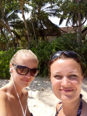 Čirou náhodou (doteď nevíme proč) jsme se dostaly do Business třídy v letu směr Lanka. LUXUS! Sedačky jsme si rozložily do polohy ležmo. Snídaně luxus. Ovšem menší luxus byl ten, že nás neustále budili kvůli jídlu, což nás netěšilo, jelikož jsme se chtěly prospat. V této třídě jsme se necítily. Nakonec jsme prospaly pouze hodinku.
