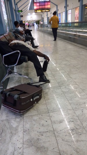 Tento muž si na letišti v Lance zdřímnul takovým způsobem, že ho personál nevzbudil. Mobil i pas se mu válely po zemi, mám za to, že mu let uletěl :D